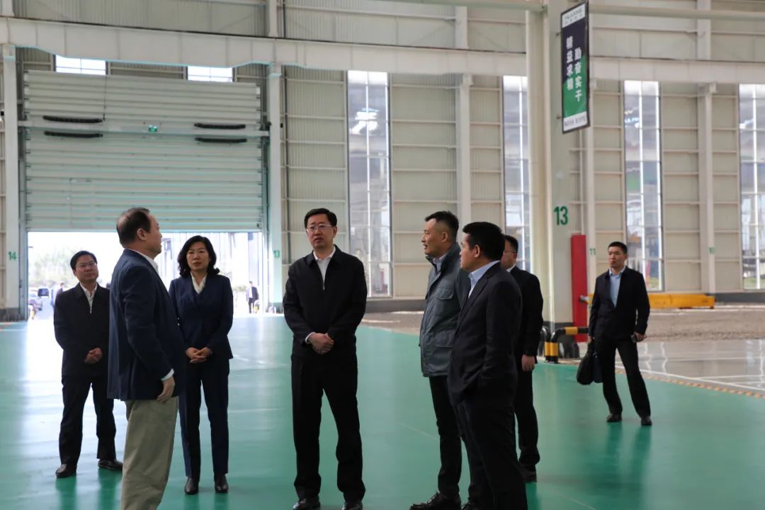 簽約儀式前,與會領(lǐng)導(dǎo)、嘉賓參觀山東華星新材料科技有限公司車間。